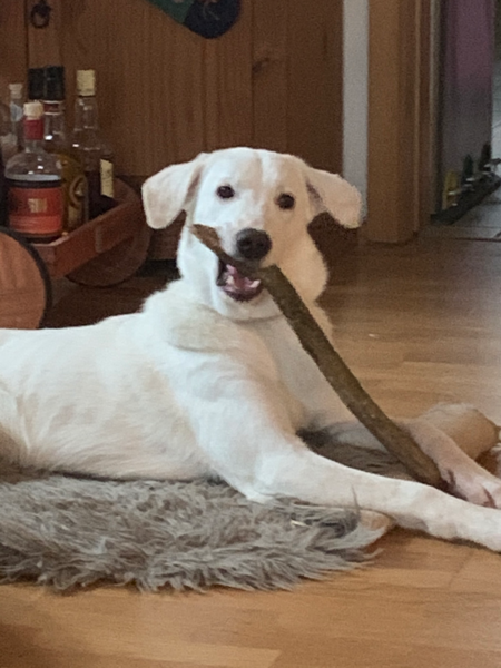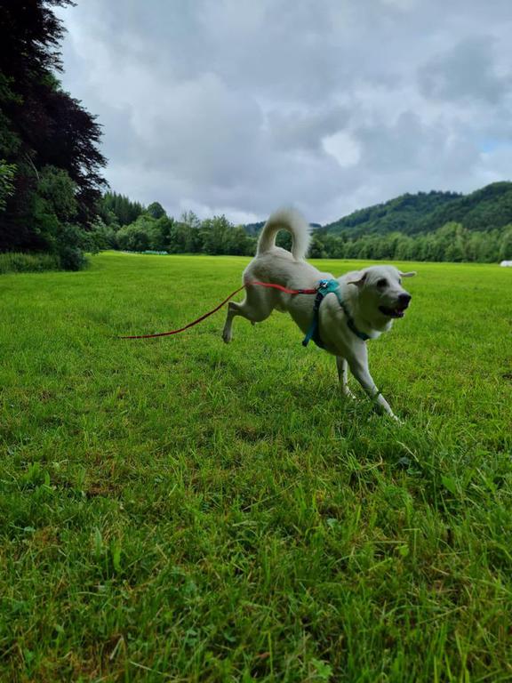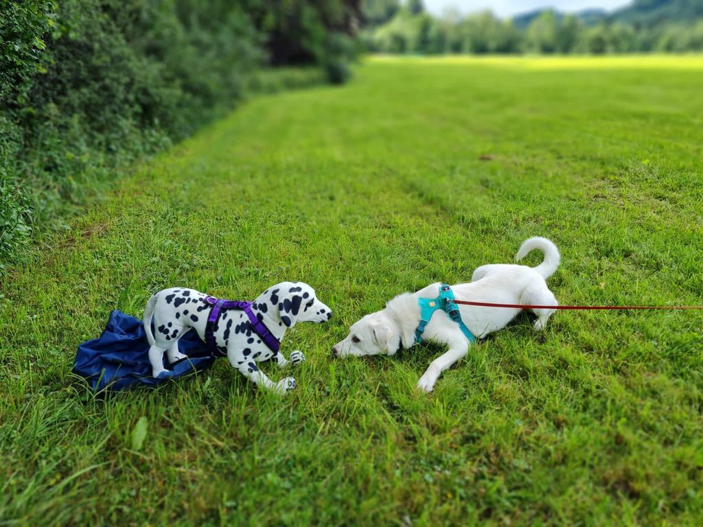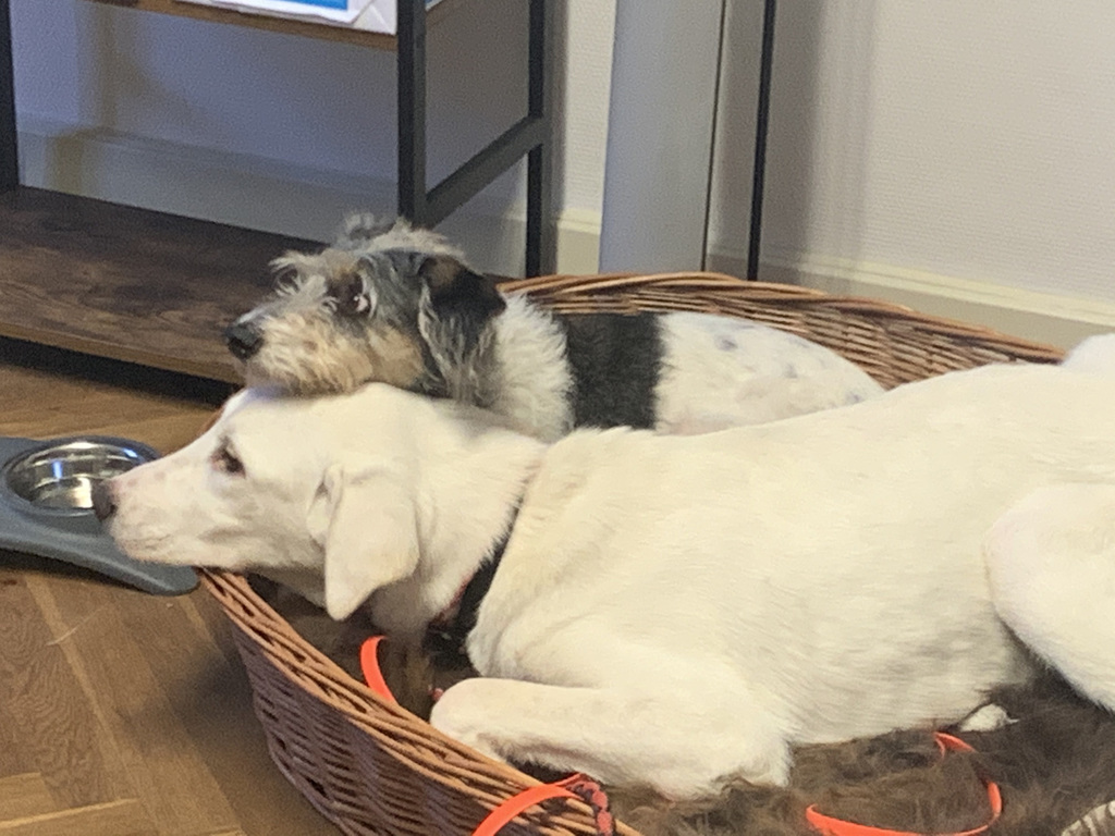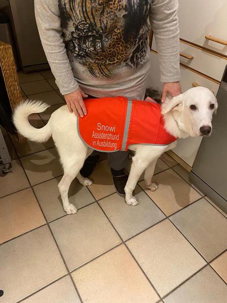 Und nun, fast ein Jahr später ist Snowi mitten in der Ausbildung. Regelmäßige Treffen mit einer Trainerin, Ausflüge in die Innenstadt und natürlich auch private Trainings sind für ihn Tagesprogramm. Natürlich darf er auch mit unserer Terrier-Dame Penny spielen und entspannen, das muss auch mal sein.